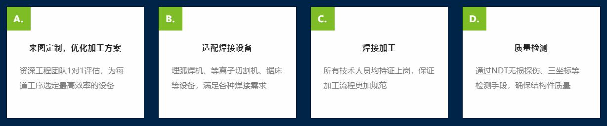 除了大型機加工服務之外,精象同樣能夠提供專業焊接服務。精象遵循ISO、GB等行業標準,擁有多個PQR工藝評定,擁有多臺專業焊接設備,焊接團隊每一位技術人員都持有相關操作證書,能夠提供堆焊、埋弧焊、氬弧焊、焊條電弧焊等專業焊接服務。